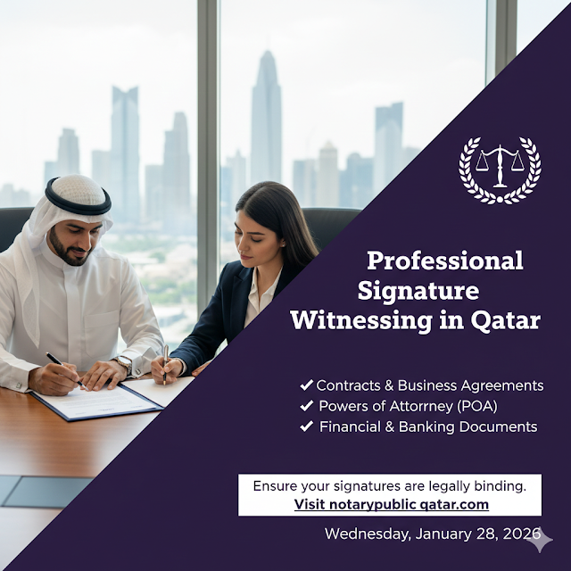 Businesses rely on Commercial Signature Witnessing Services to validate agreements, ensuring enforceability under Qatari law.
